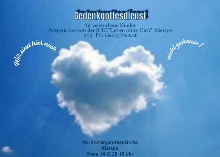Ausgerichtet von Pfr. George Freiwat und der Selbsthilfegruppe „Leben ohne Dich“ Kierspe.