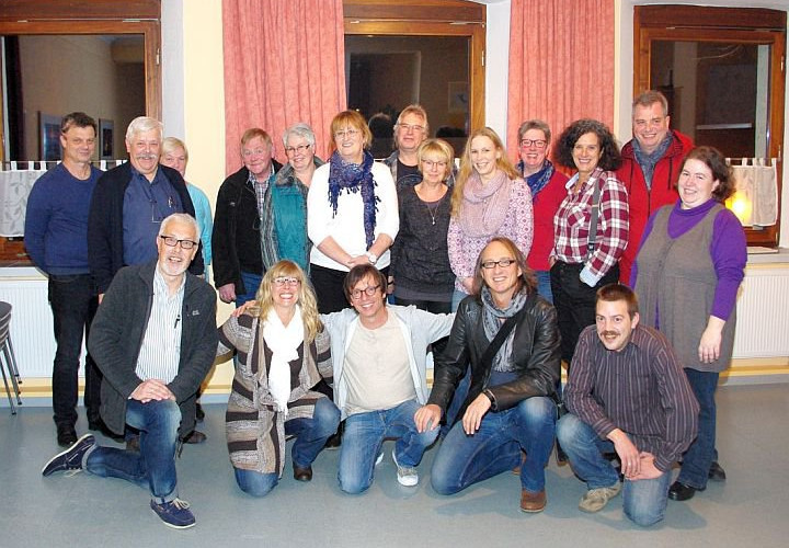 Die Kirche rockt… – auch wenn Purple meinte, es sei ja wohl eher eine Kapelle, als eine Kirche. Er hatte sie sich viel größer vorgestellt. Das Publikum jedenfalls war begeistert und Purple Schulz schaffte den Spagat zwischen Musik mit ernstem Hintergund und Klamauk. Für Purple Schulz, seine Frau Eri und Schrader war es eine Selbstverständlichkeit, sich für ein Gruppenfoto zur Verfügung zu stellen.